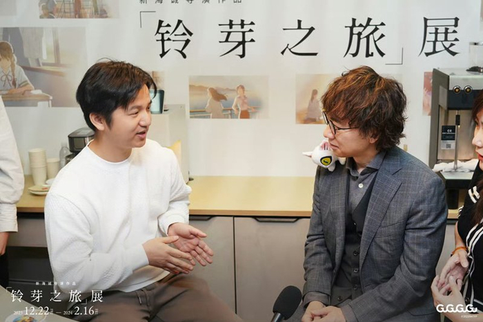 12月22日上午,新海诚导演作品《铃芽之旅》展在上海无限极荟购物中心正式开幕。开幕前一天,新海诚在展区与粉丝近距离交流,并接受了第一财经短暂专访,其间多次表达对中国粉丝的感谢,一如既往的真诚和友善:“现在的网络媒体充斥着各式各样的视频内容,我自己一个人在房间里创作的时候,常常会想,我做的事情是不是真的有意义?这两天我在中国见到了许多粉丝,他们和我说,你改变了我的人生。如果这件事情经常发生的话,我觉得我的工作就是有意义的。”