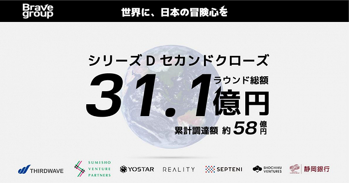 从2017年10月开始创业的Brave group,今年进行了两轮D轮融资,共筹集资金31.1亿日元,累计筹措金额达到大约58亿日元。