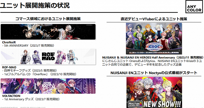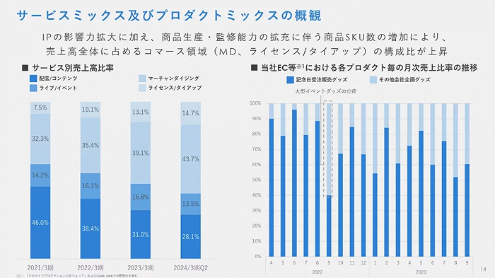 首先是营销事业。今年hololive在努力打开电商以外的销售渠道,旨在通过零售店接触广泛的消费者。同时积极开发可以全年销售的固定商品,其销售额占比正在提高。