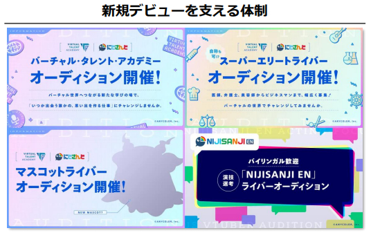 对此,彩虹社表示将持续推出新人,扩充现有制作体制,致力于扩大海外粉丝层。今年6月、10月分别出道了Krisis、TTT两个组合,共计6名新成员,11月开始举办新一轮英语VTuber招募。