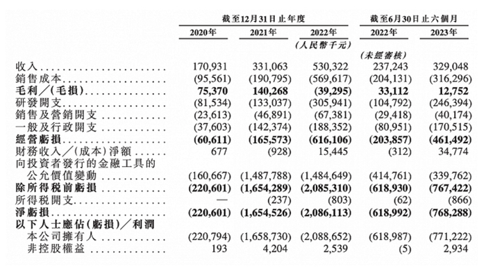 在上述报告期内,速腾聚创一直处于亏损状态,且亏损额逐年增大。2020年至2022年,公司年内亏损为2.21亿、16.55亿、20.86亿元,三年累计亏损约39.62亿元。
