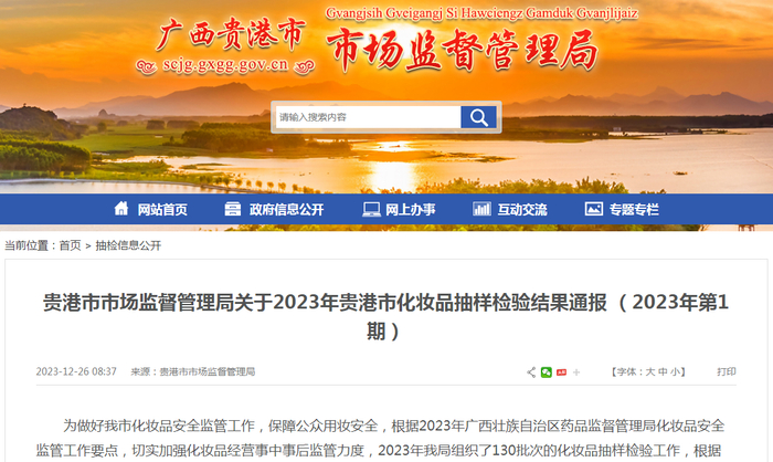 贵港市市场监督管理局关于2023年贵港市化妆品抽样检验结果通报 (2023年第1期)