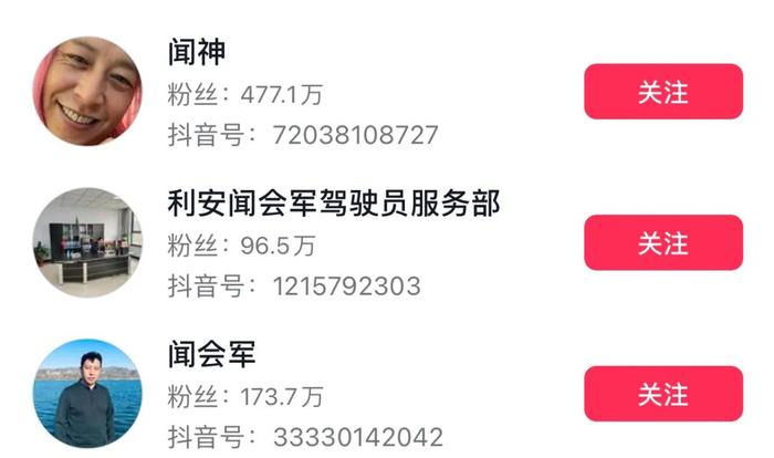 和佛山电翰、完颜慧德等一众网红一样火得让人摸不着头脑,闻会军靠三个抖音账号起家。