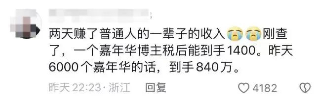 在流量最盛的12月18日,闻会军曾趁热打铁在“闻神”账号开了两场直播。有网友统计,直播中,闻会军共收到了6000个嘉年华,单个嘉年华税后收入为1400元,也就是说闻会军一天的税后收入就达到840万元。