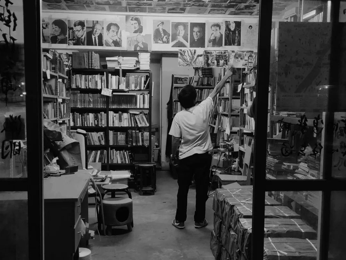 那是一家籍籍无名的书店,没有招牌,地图上也看不到,只有想要买书的人才能找到它。台港文学、拉美文学、马华文学……陈飞一本一本地摆放着那些远离大众生活日常的书,7年里,上万本书让这个20平米的书店越来越拥挤。为了“养活”自己的书店,他在小区门口摆摊,混迹大学社团“推销”,同时还去其它书店打工来“反哺”它。