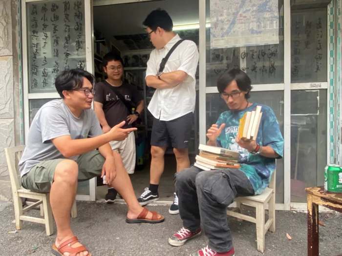 “太阳书库有点像文学社团。”张瑞舒说。他也是太阳书库的常客,因为饱受情绪困扰,很多晚上,他都带着几瓶啤酒过来,坐在书店门口与客人们一起闲聊。他很享受那种每个人都是流动的状态,大家想到什么就聊什么,从书籍收藏到谁的诗写得好、谁的诗写得烂,不用受到太多的约束。