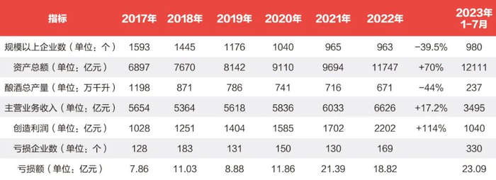 报告显示,从2017年到2022年,我国规模以上白酒企业数量减少39.5%,产量下降约44%,但收入增加17.2%,利润增加114.2%。