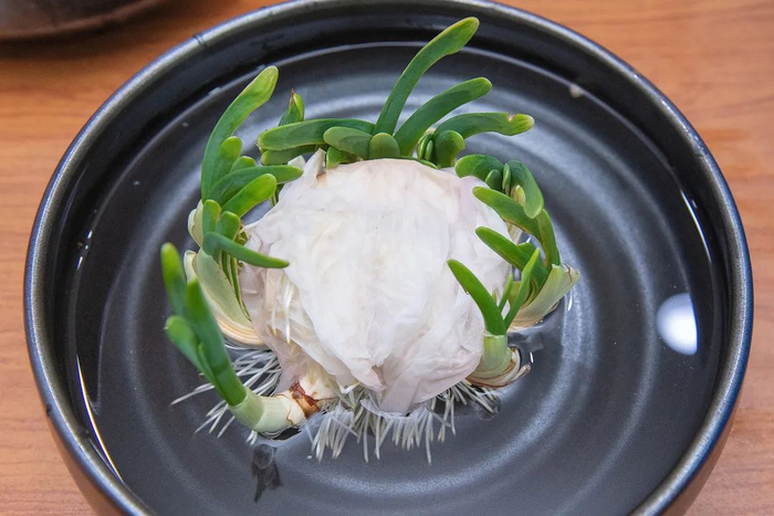 先将鳞茎底部的护根宿土和球茎外皮剥除。根盘底部的枯存根及腐烂的杂质需清除干净,避免水养的时候洁净的鳞片或根受病原菌感染。