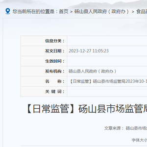 安徽省砀山县市场监管局2023年10-12月食品生产企业日常监管信息