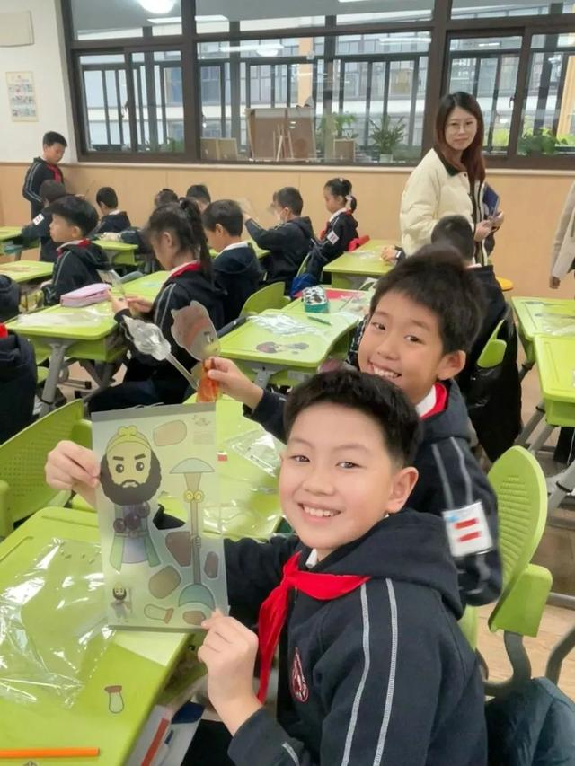 班主任老师会对每个学期的计划进行把关,比如五年级这个学期的主题是非物质文化遗产,但一节课只有35分钟,从介绍到欣赏再到动手实践,每个部分都只能泛泛而谈,所以老师就建议学生分成几个课时,让大家能有更完整的体验。有的时候几位能力强的同学组成了一队,老师也会建议进行调整,在上课的时候学生进行分工,善于表达的侧重讲解、善于动手的就在体验环节进行指导。