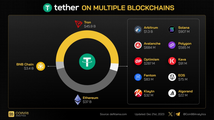 波场TRON早已是稳定币USDT第一大流通公链: