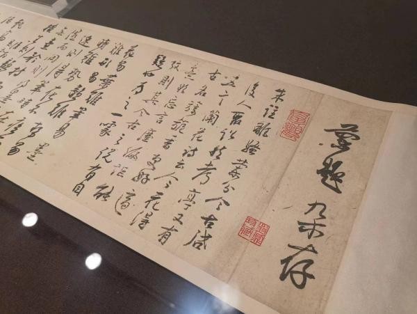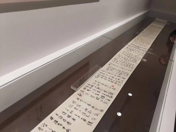 白蕉最具代表性的作品非《兰题杂存》莫属。此次展览特意开辟了一块展区呈现这副全卷长五米的《兰题杂存》。该作品内容为白蕉写兰论艺的札记,文字清通简要,词约而理赡,以他最为擅长的行书写就,双美并臻。