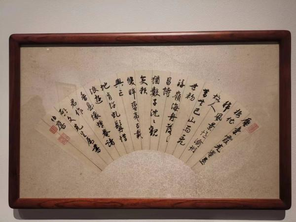 “三种书体虽然风格迥异,于同一扇面之上却并无违和之感。楷书结体谨严,文雅清劲;行书道劲秀丽,精美之之至;草书笔力沉稳劲健,颇有魏晋风韵,”张恒烟介绍,“沈先生书法风格的多样应归功于他的书学历程,二十余年的北碑临习对其书法风格的影响持久而深远,雄强劲健的北碑品格融入帖学笔法中,造就了沈氏碑底帖面的鲜明书风。他是一位细致严谨的学者,追求的书法风格首先是精微,其次才是广大,每个点画的起收都恰到好处,在纵情挥洒中亦能保持笔笔到位。”
