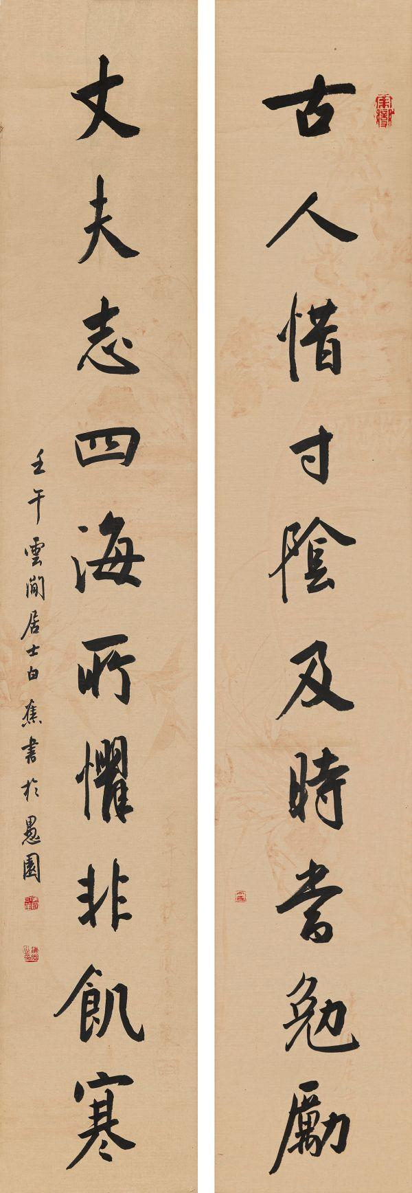 白蕉,行书 《古人·丈夫》十言联,125×21cm 1942年 ,上海市文物交流中心藏