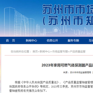 苏州市市场监督管理局发布2023年家用可燃气体探测器产品质量市级监督抽查情况公告(第93期)