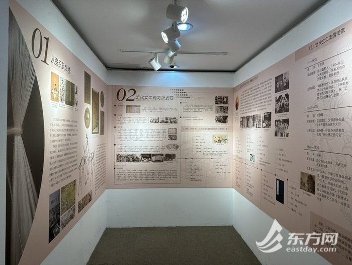 展览梳理了从1898年至抗战前设有绣工科、刺绣课的女校或专门的女功传习所、蚕业学校的开设情况,并统计了1901-1937年江苏省设有刺绣课的传习所及众多近代女功刺绣专家,勾画出近代女子女功职业教育的概貌。此外,现场还展出1923年至1941年,各地女工的工作场景等相关摄影,反映了早期工业化与机器缫丝业大发展的背景下,女工群体的生存境遇与教育情况。