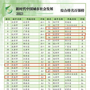 12月25日,“新时代中国城市社会发展指数暨百强榜(2023)”出炉,山东10市上榜综合排名百强,其中泰安排名第91位,在山东排名第10位。另外,在该榜单中的文化教育与科技创新百强榜、经济发展与民生建设百强榜中,泰安分别排名第73位、第87位。