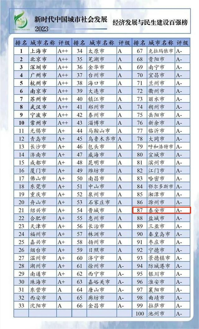 泰安跻身中国城市百强榜!山东10市上榜,泰安“卡位”入选