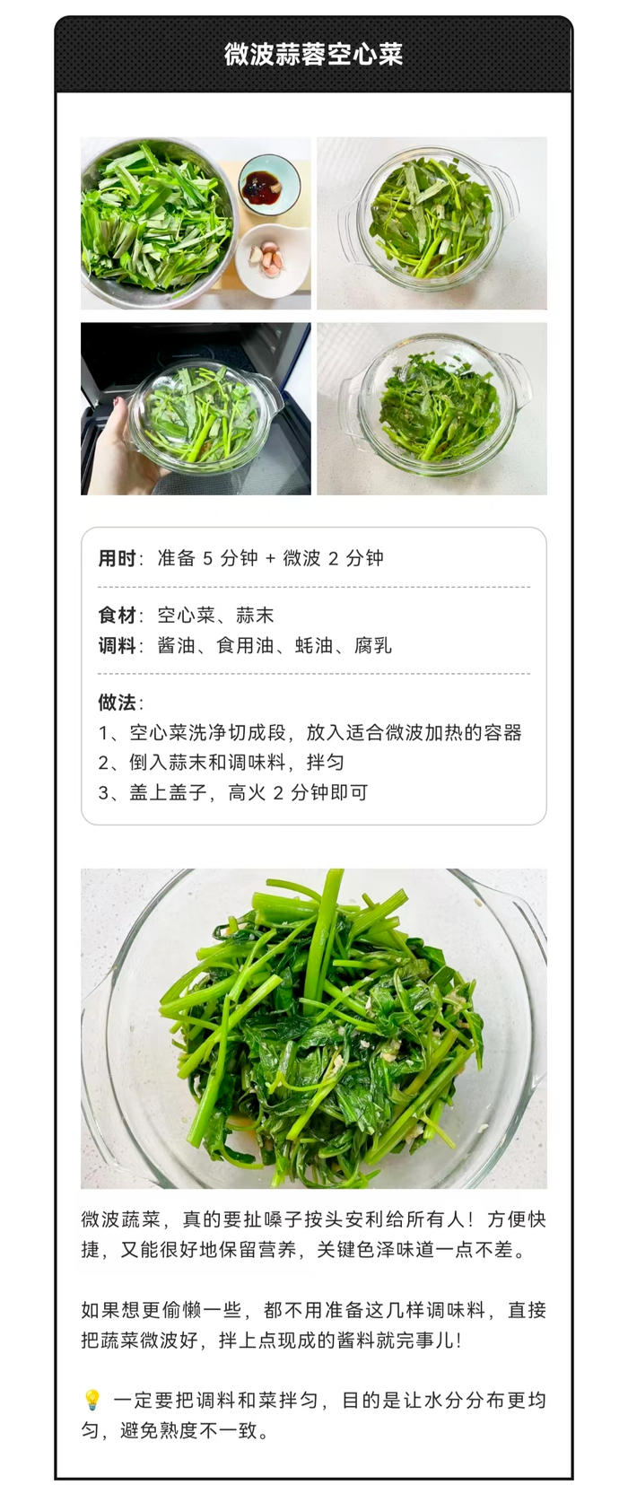 而且啊朋友们,微波炉作为目前已知加热效率最高的烹饪工具,不仅能很好地保留食物营养,它还很省事儿。