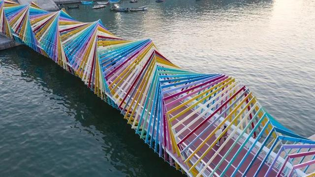 02彩虹景观桥色彩斑斓,宛如海上“万花筒