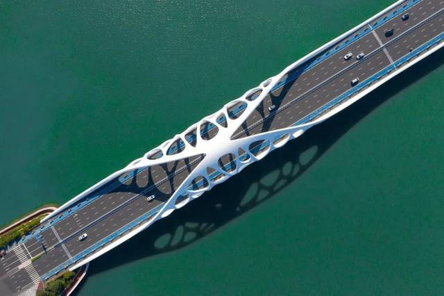 桥梁上部采用了国内首创的“珊瑚贝”装饰拱