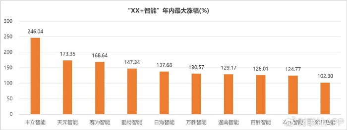 注:名称为“XX+智能”个股2023年最高涨幅排名(截至2023年12月25日)