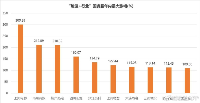 注:名称为“地名+行业”的国资股2023年最高涨幅排名(截至2023年12月25日)