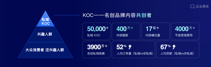 据名创优品集团副总裁兼首席营销官刘晓彬介绍,名创优品从3900万名私域粉丝中筛选和组织了5万多名更有创作能力和分享欲的私域KOC,通过企业微信,名创优品可以对他们进行扶持和帮助。