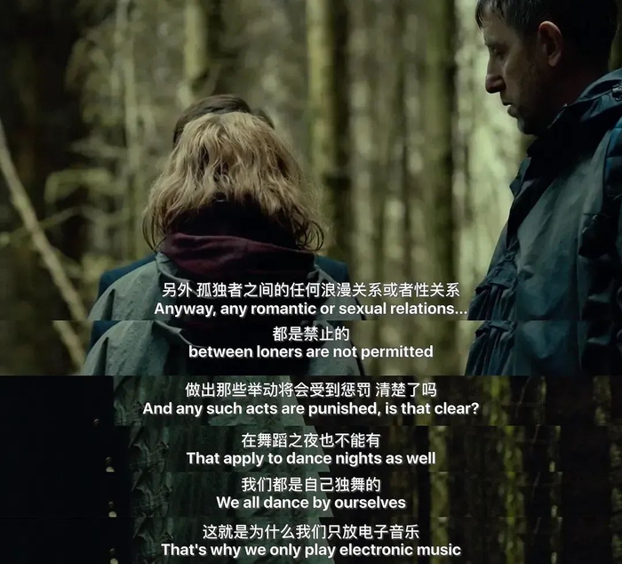 往更社会层面看,婚姻,作为一项社会制度本身,不应该把自己作为绝对真理,强加于每一个人身上。否则,就会走向极端,如《龙虾》里一样,把单身者变成动物,或者,让真正的恋人失去眼睛,何其惨痛?没有合适的人,为什么一定要结婚呢?明明合适的两个人,为什么一定要分开呢?可是,偏偏有些人,要制造一个高压锅出来。