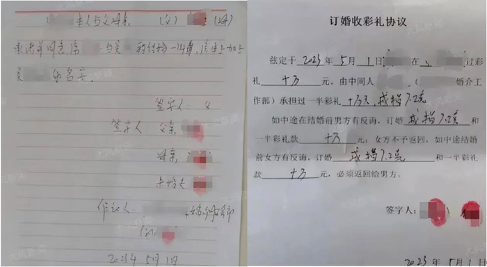 在这个协议中,双方进行了怎样的利益交换和资源分配呢?男方家族出了20万彩礼(订婚交付10万,女方反悔可退,男方反悔不退)、金器、婚房(2017年40万元购入),合计起来,席某的父母,为了这次结婚,付出超过60万元。对于一个农民家庭而言,这接近于他们老夫妻一辈子的辛勤劳动成果。