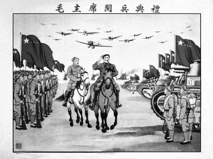 年画《毛主席朱总司令阅兵图》