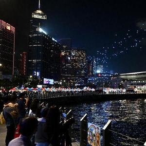 “香港夜缤纷”:维港上空无人机表演点亮夜空(中新社)