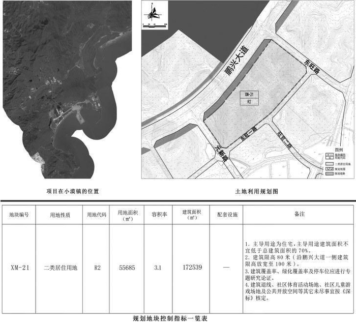 XM-21地块位于深圳市深汕特别合作区小漠镇元新村鹏兴大道南侧,具体规划设计条件如下: