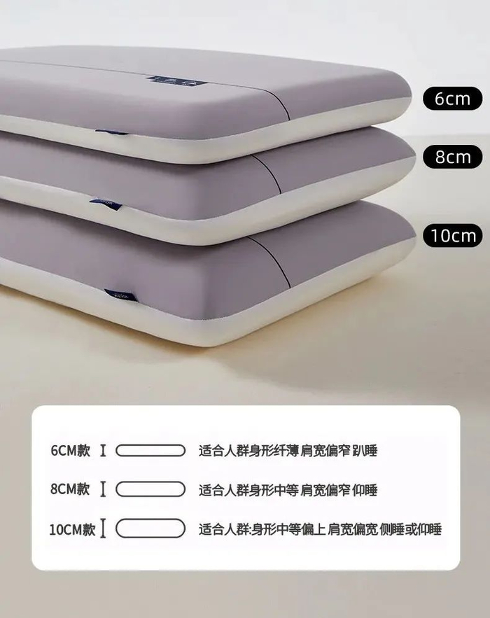 考虑到不同人的体型、肩宽有一些差别,这款安眠枕设计了3个高度↓