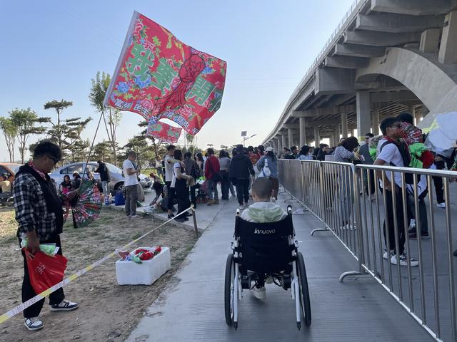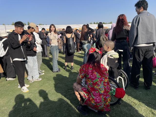 轮椅驶往音乐节现场的路上,三三两两的乐迷认出董宇来。有人嘀咕“这不是迷笛的吗?”“这不是董宇吗?”一些人兴冲冲上前询问他是否能合影,还有乐迷与他碰拳。