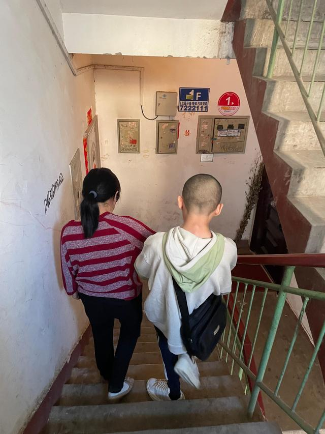 董宇母亲林惠芳扶他下楼。