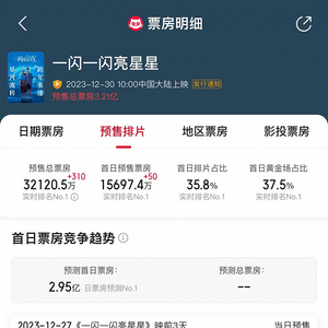 而即将在12月30日上映的《一闪一闪亮星星》无疑是今年跨年档最令人期待的电影。数据显示,今年跨年档预售票房超过4.5亿,其中《一闪一闪亮星星》就独占3.2亿。这样的数据也是得益于2022年上线的同名剧集。电影版由原版人马出演,拉足了期待值,剧中台词“张万森,下雪了”,更是成为今年冬天抖音的热门BGM。