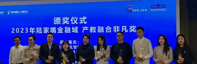本次活动结合各方建议,评选出陆家嘴金融城最佳合作院校、机构和个人,分别颁发“2023 年陆家嘴金融城产教融合卓越奖、产教融合飞跃奖、产教融合非凡奖”。