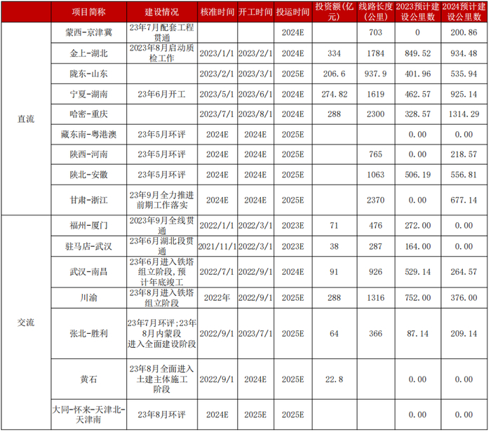 电网建设方面,铝线缆主要涉及110KV及以上交流电网项目,根据电网十四五投资规划,2024年交流电网投资将维持正增长态势。直流电网建设以特高压项目为主,根据国家电网及南方电网特高压相关项目规划,直流项目在2024年将会呈现显著增长态势。整体而言,电网建设在2024年对铝消费贡献将会呈现正增长态势。
