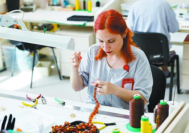 艺术家们认真思考珠宝设计,工匠和客户也经常提出建议。有些工匠会准备颜色和大小合适的宝石,另一些工匠则会组装首饰,还有些工匠会检查制作完成的首饰,对着光检查是否有裂缝或划痕。他们尽量不丢弃任何部分。琥珀的“碎片”被用来制作艺术品、细节装饰。