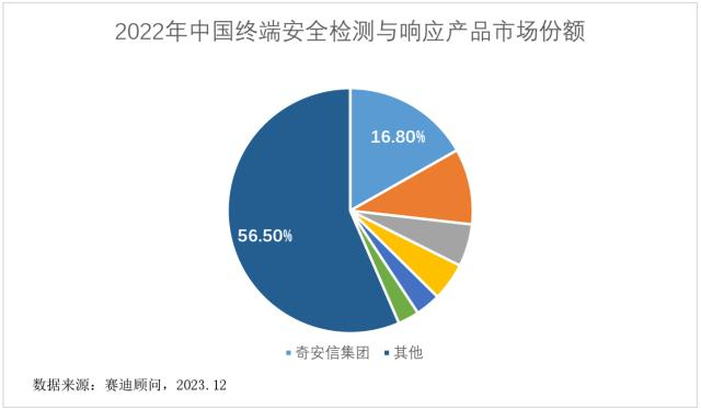 “2022年,中国终端安全检测与响应(EDR)市场规模达到18亿元,同比增长25.9%。”近日,赛迪顾问发布《中国终端安全检测与响应产品市场研究报告》(简称《报告》),奇安信以16.8%的市场份额,位居2022年中国终端安全检测与响应市场第一,超过第二、三名市场份额总和。