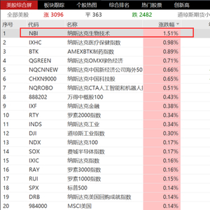 隔夜美股三大指数小幅收涨,道指涨0.3%,再创历史收盘新高;纳指涨0.16%,标普500指数涨0.14%。美股创新药板块节节攀升,纳斯达克生物科技指数(NBI)涨1.51%,连续4天高歌猛进,强势领涨大盘,跑赢包括罗素2000、纳斯达克100、标普500等一众主流指数!
