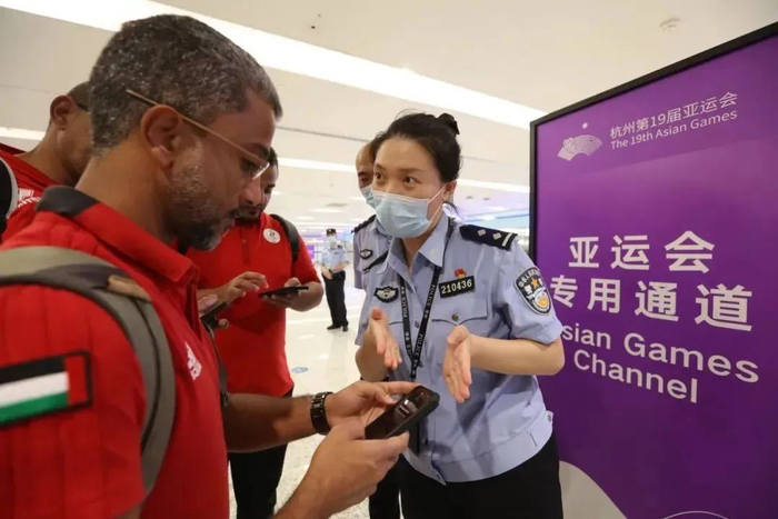 2023年9月20日至21日,浙江、上海边检总站移民管理警察保障涉亚运人员快速入境,确保口岸通关顺畅。