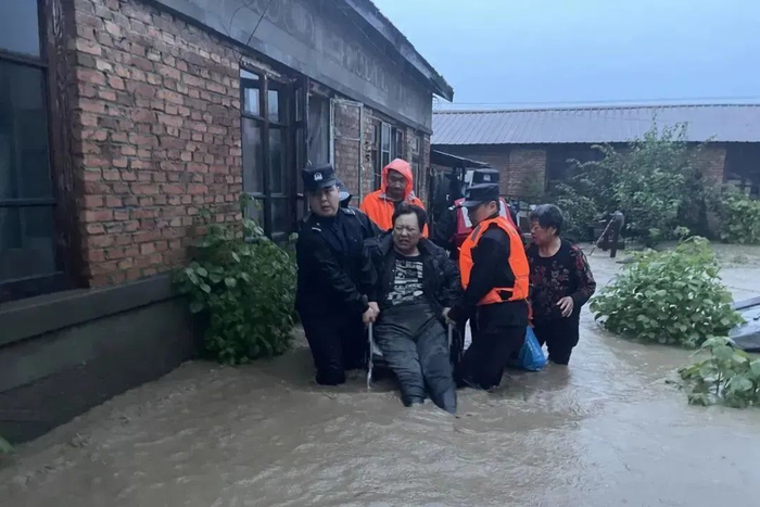 2023年8月11日,台风“卡努“带来的强降雨导致黑龙江牡丹江市老黑山村被淹,黑龙江边检总站老黑山边境派出所移民管理警察冲锋在前,紧急转移被困群众。