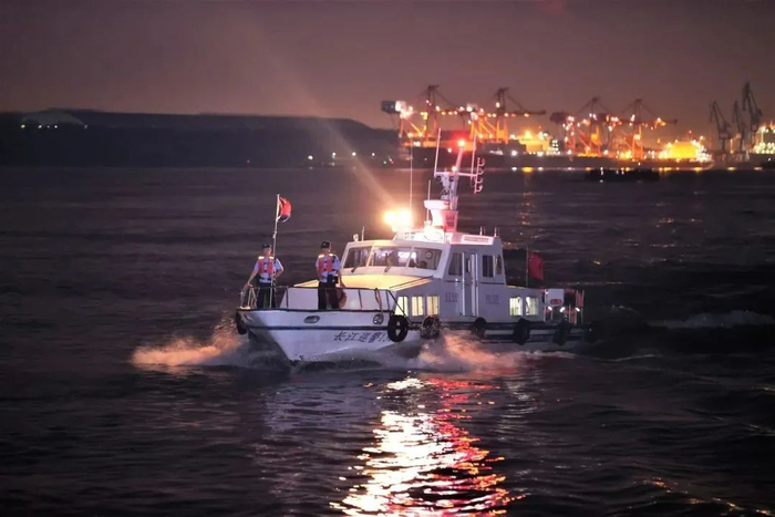 2023年10月26日,山东边检总站董家口边检站联合海事、医疗、救助等部门在青岛董家口港开展海上联合救援演练。