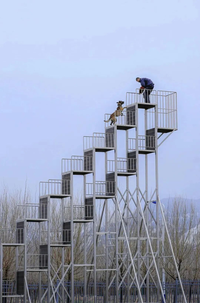 2023年4月8日,新疆边检总站乌鲁木齐警犬训练基地开展警犬实战实训练兵,强化警犬技能素质。