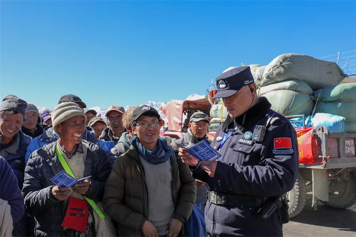 2023年11月13日,里孜口岸正式开通。西藏边检总站里孜边检站移民管理警察查验首批通关旅客证件。
