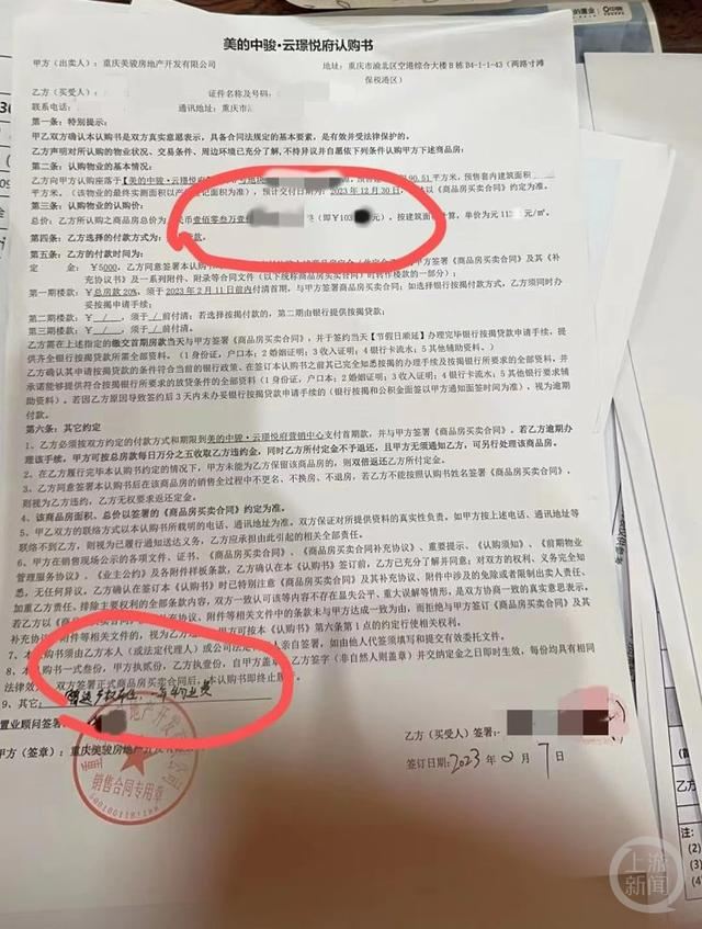 2023年2月,王静(化名)在渝北区美的中骏·云璟购买了一套洋房,并按照房屋《美的中骏·云璟悦府认购书》(以下简称《认购书》)支付了相关款项。当时接待她的置业顾问,还特别承诺要送给王静一个产权车位,担心开发商后续反悔,她还特地要求在《认购书》上注明。没想到临近接房时,开发商突然“反悔”,告知王静如果要车位,必须支付4.5万元购买,于是她向上游新闻热线966966/上游新闻APP反映此事。