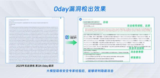 8月,在2023年大型实战攻防演练中,安全GPT检测大模型在没有任何先验知识的前提下,发现50+在野0day漏洞利用攻击。