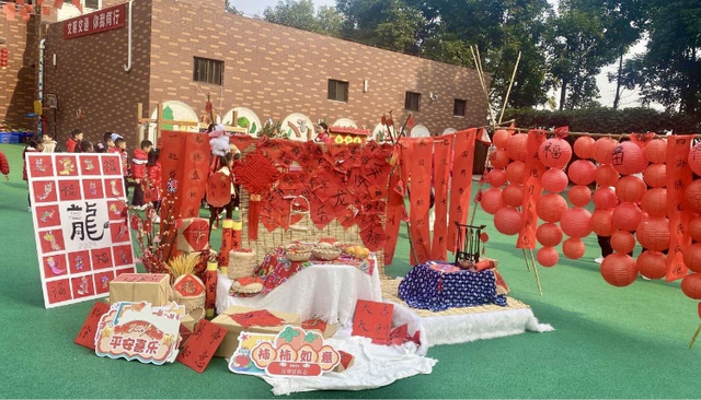 粘土画、水墨画、彩笔画、福字、花灯、对联、游戏介绍展板……游园活动当天,以红色为主色调的环境布置和班级作品展装扮着整个园所,为整个幼儿园增添了一抹靓丽的色彩。这些作品不仅展示了孩子们的创造力和想象力,也成为了游园会中一道美丽的风景线,吸引家长们驻足观看。